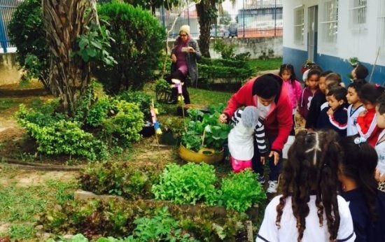 Conheci a horta de um lindo projeto em uma escola vizinha