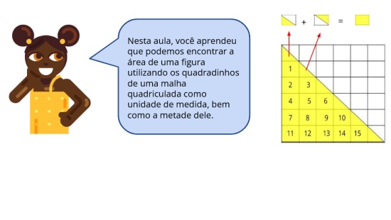 Àrea e o uso de metade de quadradinhos em malha quadriculada.